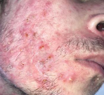 Mild gingival recession on one side and swelling-induced pseudopocketing on the other.