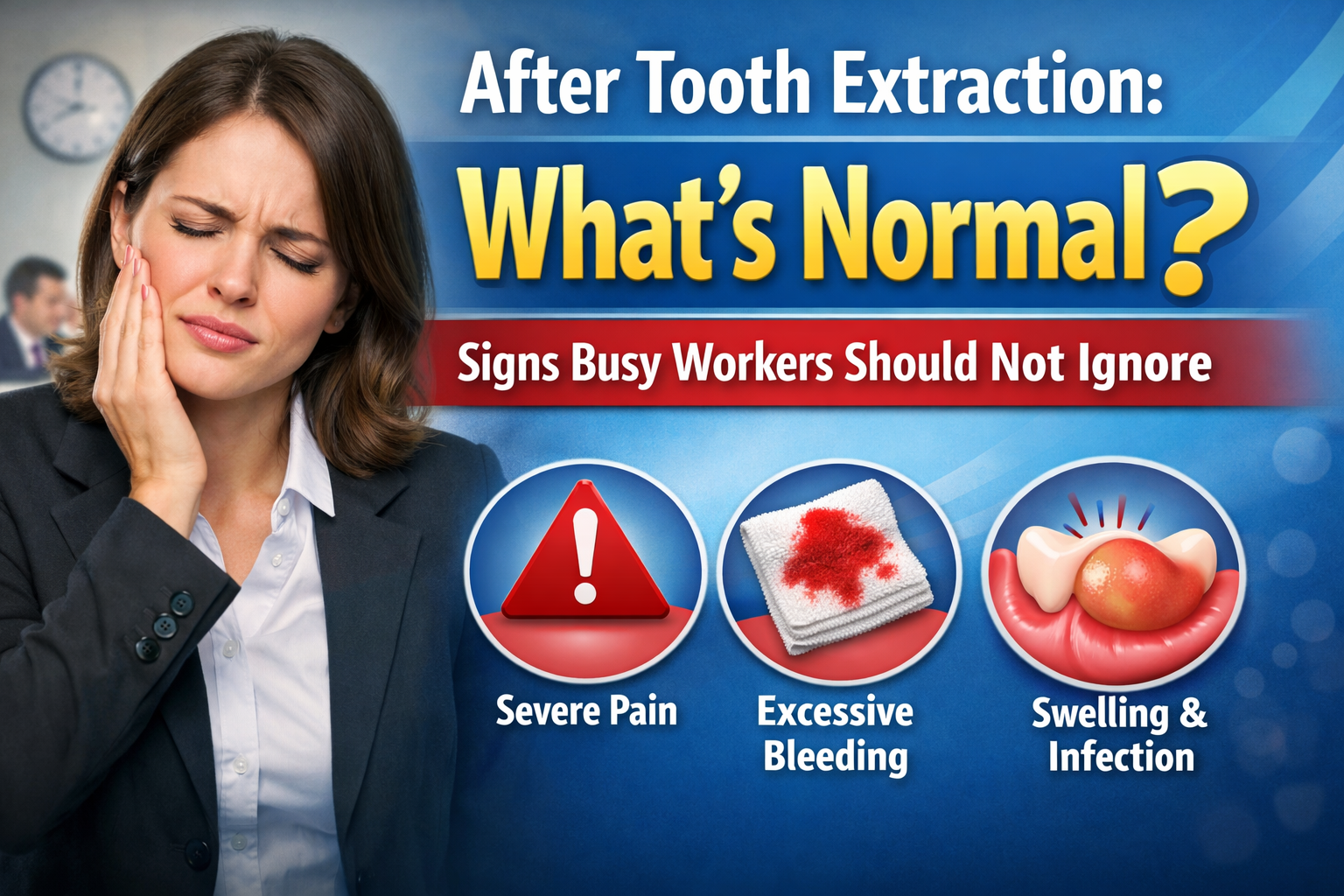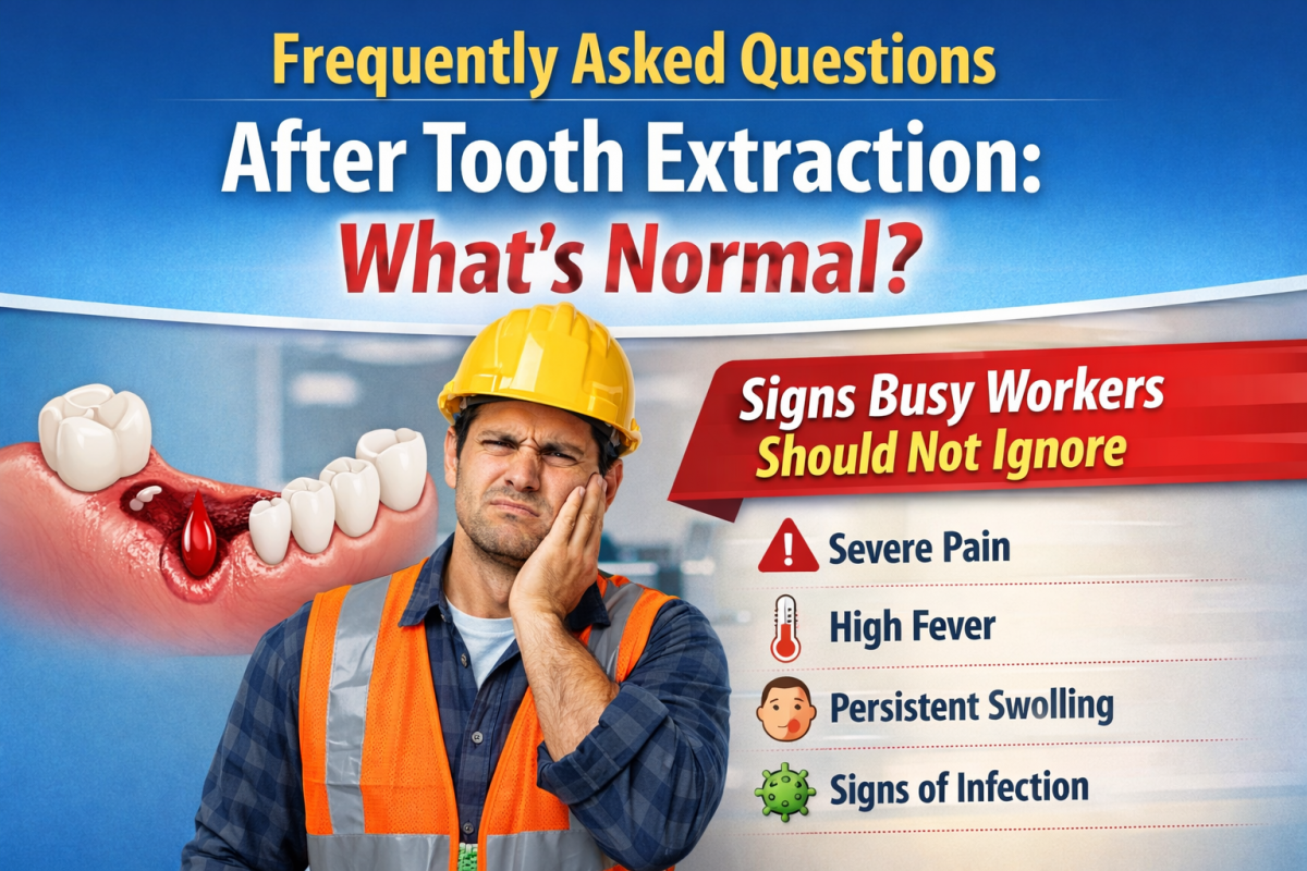 After a tooth extraction, some pain, swelling, and discomfort are normal. However, many busy workers return to work immediately and ignore early warning signs. They assume the pain is part of healing.
