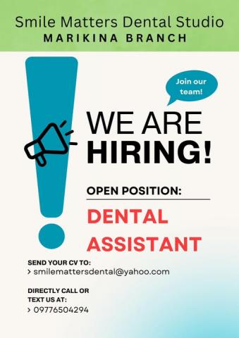 HIRING: DENTAL ASSISTANT Smile Matters Dental Studio – Marikina Branch
