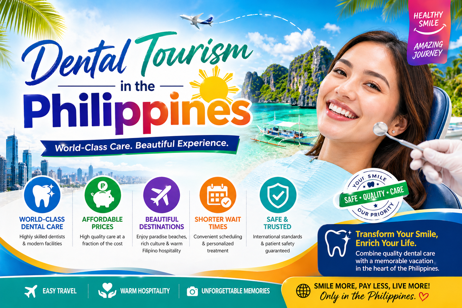 Dental tourism in the Philippines is growing quickly—and for good reason. Patients from the United States, Canada, Australia, and the UK are traveling here for procedures like dental implants, crowns, and veneers at significantly lower costs.
