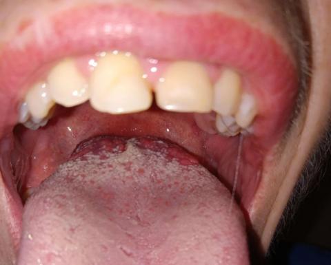 Tongue coating consistent with oral dysbiosis